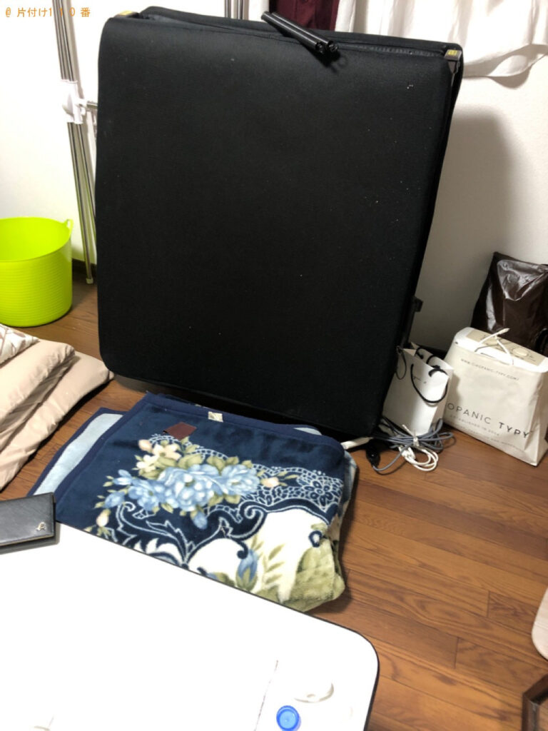 担当のコメント | 折り畳みベッド、布団、一般ごみ等の処理にお困りのお客様からご相談いただきました。見積り額がご予算内だったことがご依頼の決め手になったようです。片付け110番では、最短即日のお伺いが可能です。不用品がございましたらまたいつでもご相談ください。 |